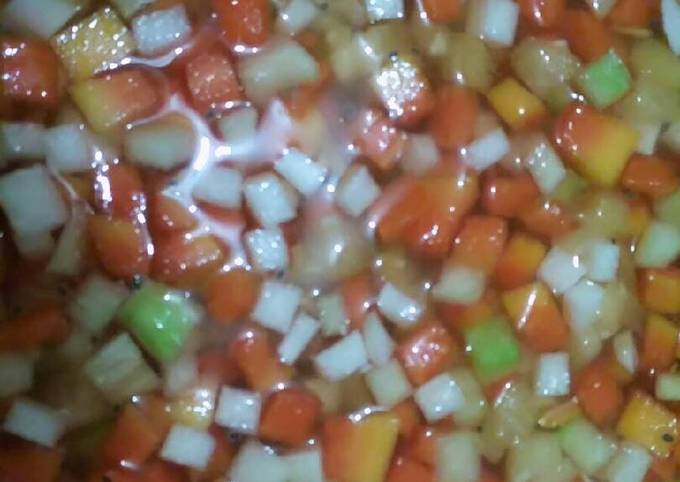 Dalam wadah lain masukkan nutrijel yg sudah jadi jus leci selasih buah leci kalengan beserta airnya dan creamer aduk rata semua. 10 gram gula pasir. 1 tetes pewarna merah.